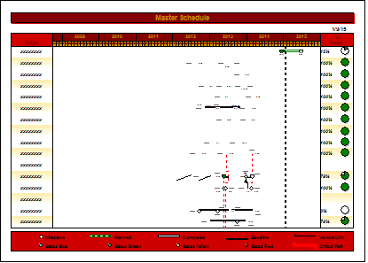 In this example, it's easy to see that the legend is outside the page dimensions. If using a floating legend, be sure that the legend is within the page dimensions. If a floating legend is positioned at the bottom of the schedule, change it to a non-floating legend so that it will be contained within the page dimensions. (The example below uses a floating legend)