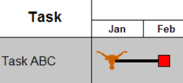 However, when printed or pasted into PowerPoint, the bitmap's rectangular background appears, as shown below. By creating a clipping symbol, the rectangular background coloring is removed from the printed schedule.