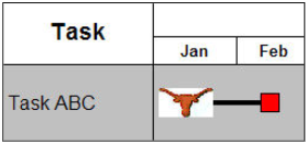 Answer:A clipping symbol is used to overcome the problem of some bitmap symbols having a white rectangular background when printed. Only use a clipping symbol for non-rectangular bitmap symbols. Also, as clipping symbols do not work with metafiles, don't use a clipping symbol if the schedule will be copied to another application as a metafile. (OK for bitmaps) Example of white rectangular background issue:In this example, a bitmap is used as a symbol. This is how it appears on the screen: