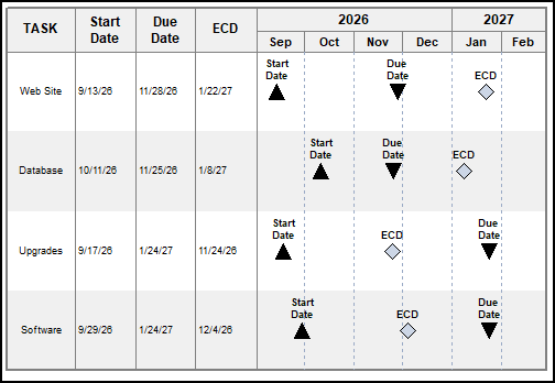 Now, use the baseline symbol you set up in your toolbox, for ECD. Use the "normal" symbol for the Due Date. (Shown here in the End Date SmartColumn)