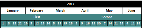 Up to 4 date headings can be shown on a schedule. Headings can be placed above or below the schedule area (or both above and below). For each level, choose one of the 30+ built in headings or create a custom heading. It's even possible to set up logarithmic headings to enlarge one or more time period so that extra detail can be shown during that period.