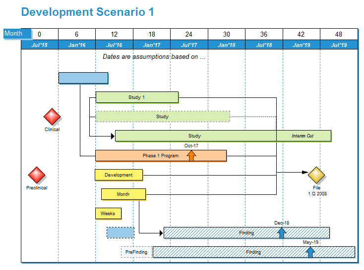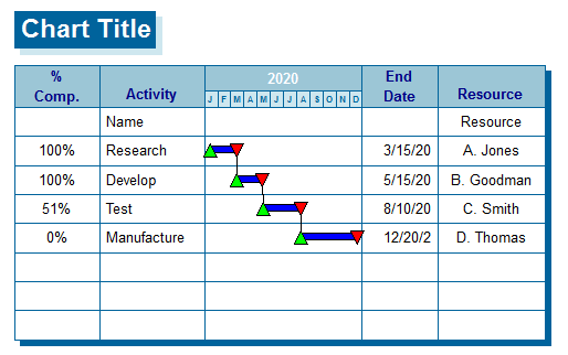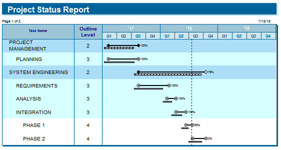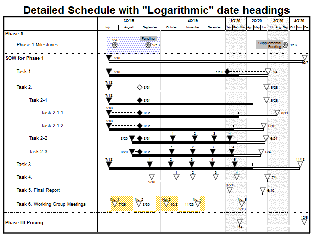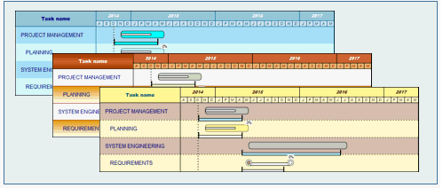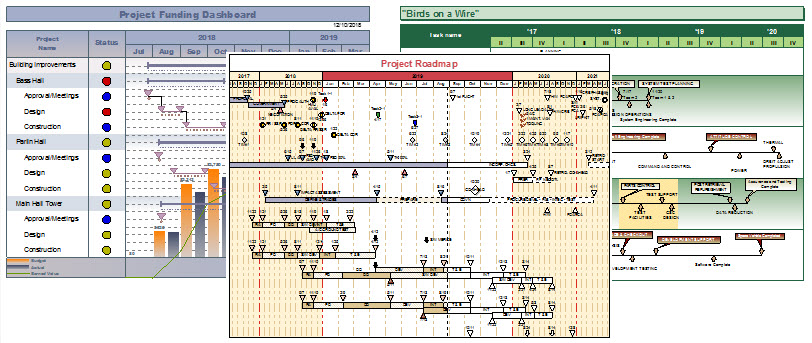 Milestones Professional offers a direct interface to Microsoft Project, making it easy to generate presentation report formats beyond the standard formats offered by Microsoft Project. A step-by-step wizard makes it easy to create presentation-ready schedules. A few examples are shown below: