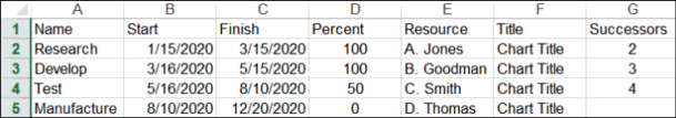 For example, you might import a spreadsheet like the Microsoft Excel spreadsheet