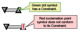 Any symbol can have a constraint which limits the symbol’s movement or triggers a user-defined condition, such as displaying a reminder note or launching a hyperlink. Using the arrow tool, click once on a symbol within the schedule area and choose Selection | Constraints. When the symbol is moved such that it does not conform to a date constraint that you have set, the symbol will be overlaid with a large exclamation point like the one shown: |