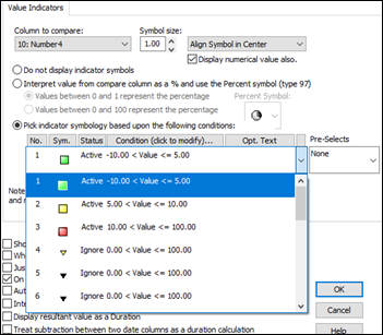 Answer:You should set up a Values SmartColumn with a column tag for the Number column to be refreshed. Then, customize the settings to display the colored indicator based on the number.