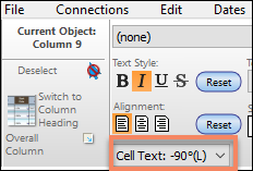Rotate column textSelect a column. Set the column angle via the toolbar.