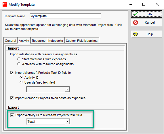 5. Check to make sure that under export, the options indicated are picked. The text field picked must be used as the unique ID field for import and refresh with Milestones.