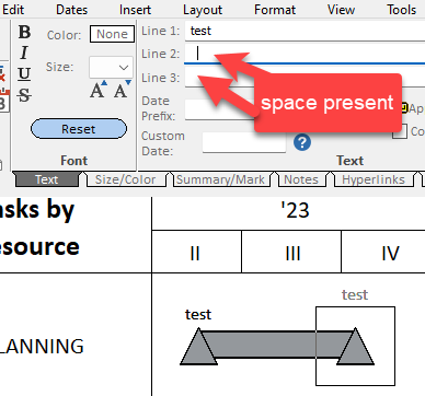Answer:The most likely cause of this issue is that there is a space present on the other symbols. Each symbol can have 3 lines of symbol text. If there is only one line it will appear close to the symbol. If there are blanks on the second line of text the first line will be forced up a bit.