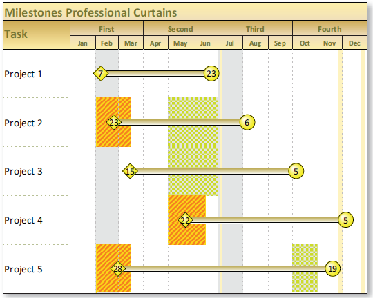 Case #2: We would like to show some specific part of the project in where the project start out of range start dates however the months date headings count from specific event/milestone which is not in the range of start and finish date.