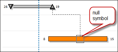I need to connect a symbol from one row to the center of a bar on another row. It looks like vertical connectors only go from symbol to symbol. Is there any way to show the connector hitting the middle of a bar?