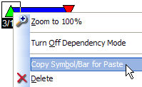 A symbol, and bars/symbols attached to it (task bar), can be copied to another task row on the same page or another page, or can be copied to another part of the same task row.