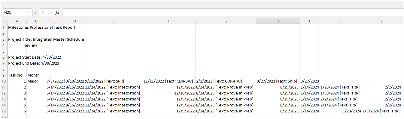 Milestones Professional schedule information (tasks, dates) can be pasted into Excel or any other application.