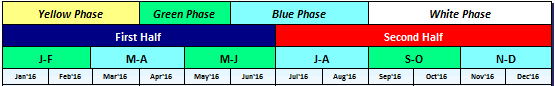 Create up to four different user-defined date headings per schedule which can be incorporated into any or all of the date heading levels on the schedule. Sections can be colored for extra emphasis.