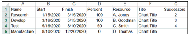 Copy a range of cells in Excel (or other spreadsheet program) to the Windows Clipboard and then paste them into a Milestones Professional schedule.