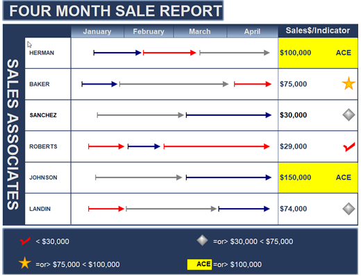 Pick the indicator symbology based upon the following conditions to display symbols, text, and/or color based on the column values.