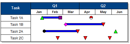 Symbol type within Date Range: Task rows with the selected symbol type within the designated range will be displayed.