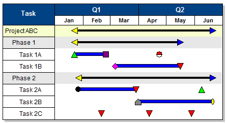 This schedule contains 8 symbol types. The user may need to view only task rows containing specific symbols and/or bars.