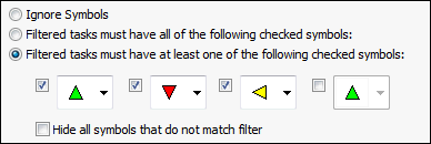 Filtered tasks must have at least one of the following checked symbols: Only task rows containing at least one of the checked symbols will display.