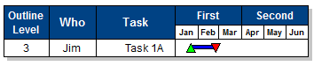 The schedule below is the result of further refining the schedule above by filtering the visible task rows by date range, to see which of Jim's tasks begin in January.