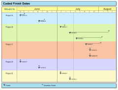 Coded finish dates displays the finish date and optionally the baseline finish date grouped by code. Step 1: Code the Microsoft Project schedule Step 2: Produce the coded schedule This format can be refreshed. |