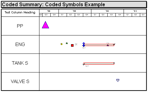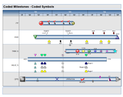 The Coded Symbols chart type makes it easy to map a Microsoft Project schedule to a presentation Milestones chart.