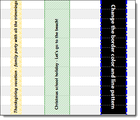 Now patterns can be used for task row shading. If a pattern is selected, the shade color is used for the pattern color and the Effects target color is used for the pattern background color.