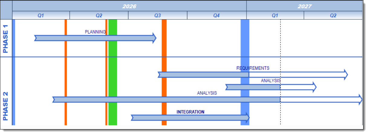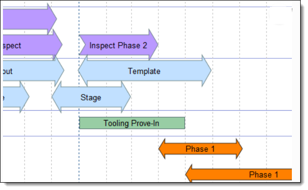 In response to popular demand, version 2025 now includes bars with built-in arrowheads, simplifying the creation of clear and professional-looking schedules. These arrowhead bars are especially useful for quickly indicating direction, flow, or task dependencies.