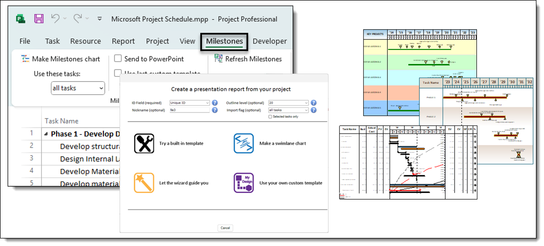⚡ Effortlessly Switch Between Tools: Move seamlessly between Microsoft Project and Milestones Professional to craft visually stunning schedules.