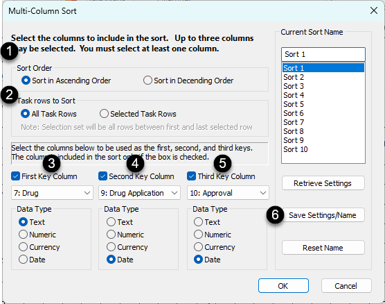 Rearrange all task rows by either the earliest symbol date or the latest symbol date on each task row, in an ascending or descending order. Thus, tasks can be listed in chronological order, from the earliest task to start, to the latest task to start; from the earliest to finish, to the latest to finish; and more. Optionally, maintain the schedule's outline structure, preserving the parent/sub-task hierarchy. Sort the tasks by the earliest symbol or latest symbol on each task row: