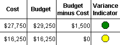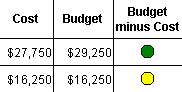 A Calculation/Indicator SmartColumn can display calculation results; symbols, text or colors based on those results; symbols, text, or colors based on another column's values; or a combination of these choices, as well as convert calculation results to percentages with matching percent complete pies. See:Tutorial Lesson 13 - Calculation/Indicator and % Complete Columns Below are short descriptions and examples of how Calculation/Indicator SmartColumns can be used. Click a link for detailed instructions. The Calculation/Indicator SmartColumn makes it possible to: