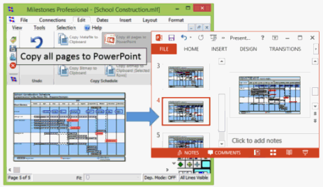 For multi-page or single page Milestones schedules, it's easy to create a PowerPoint presentation.