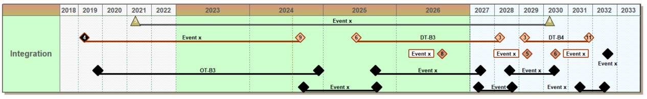 On a schedule which covers many years, it might be beneficial to expand certain years so that more detail can be seen for those years.