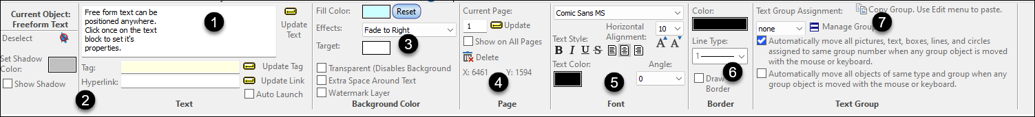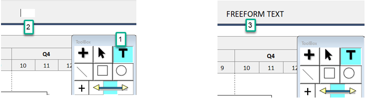 With the tool, click once on the Freeform text block. The toolbar displays the options for Freeform Text: