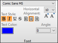 Set the text color, alignment, text properties and angle: