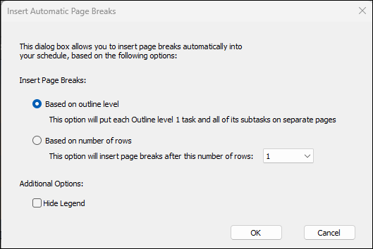 Select the task row before which a page break is needed. (The task row selected will be at the top of the new page).