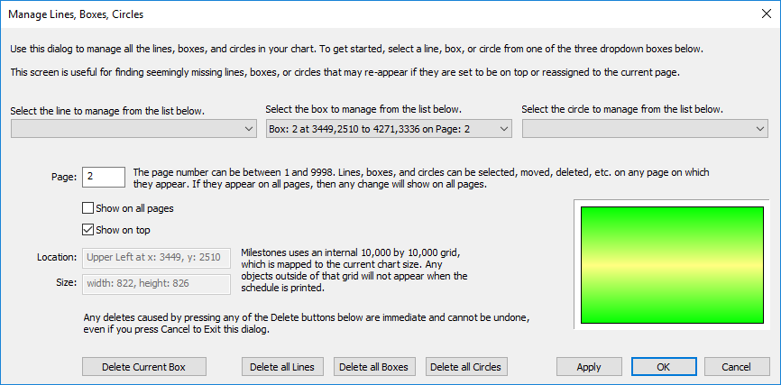 5. Choose Show on all pages to place the line, box or circle on all pages of the current schedule.