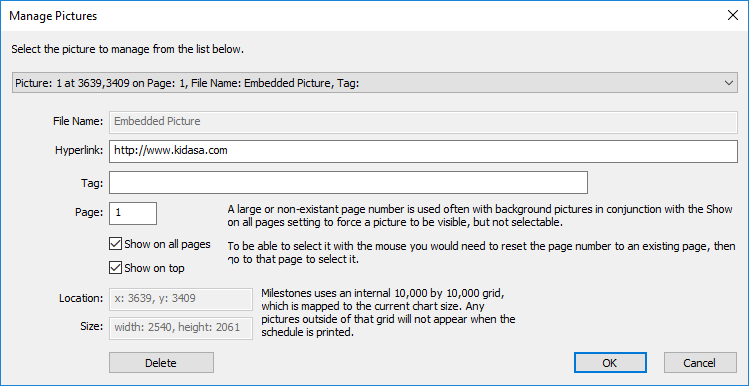 5. Choose Show on all pages to place the picture on all pages of the current schedule.