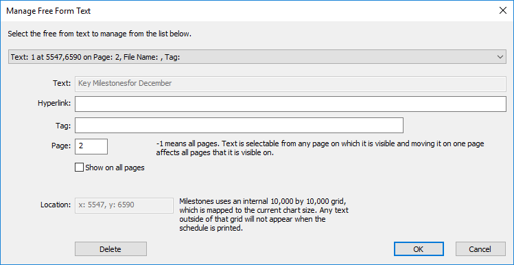3. Make changes to HyperLink, tag or page number, or press Delete to remove the text from the schedule.