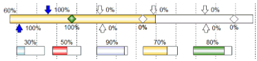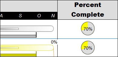 Status can be changed for an entire schedule or for individual tasks. Individual tasks can be adjusted to reflect whether they are on schedule, behind schedule, or ahead of schedule. Additionally, if multiple tasks are being shown on a single Milestones Professional row, the % complete can be set separately for each task. |