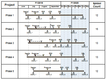 A Symbol Count SmartColumn displays a count of the number of symbols on the task row. This type of SmartColumn is useful for tracking the number of occurrences of events over time.